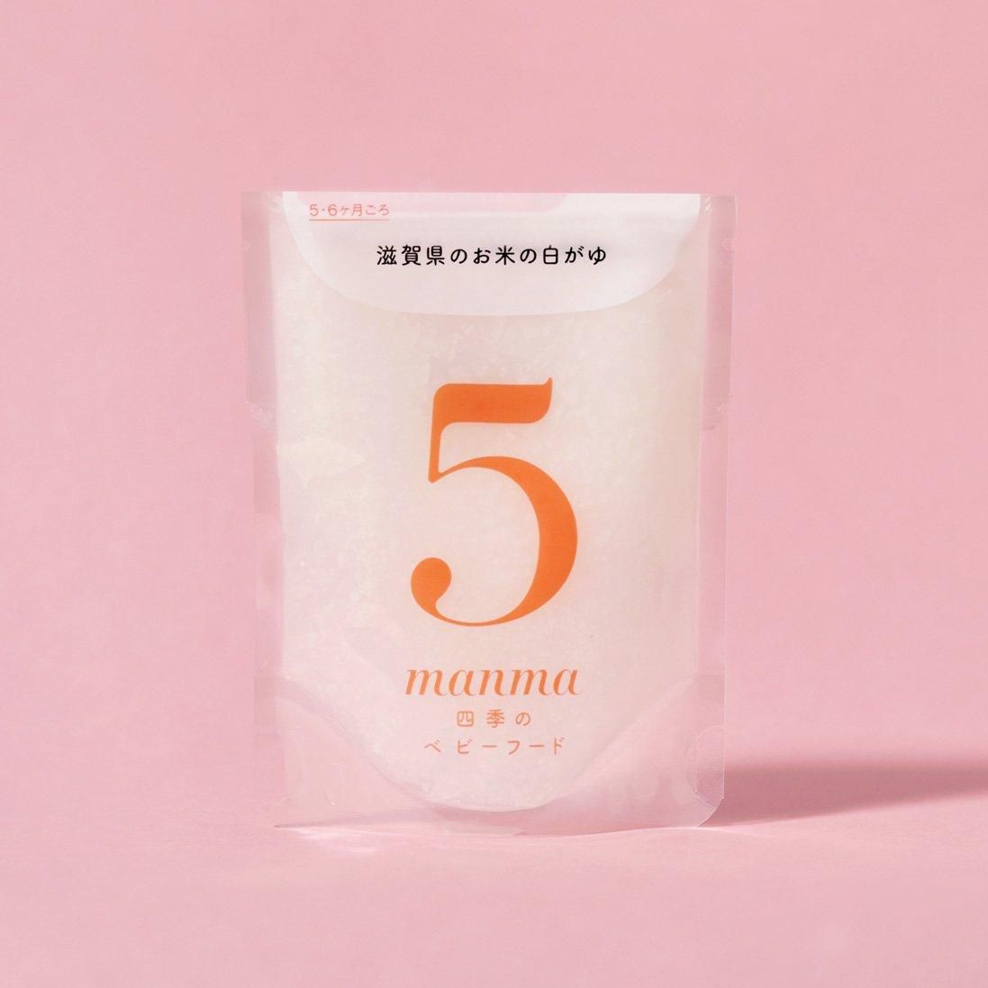 [この商品についてテキスト:滋賀県は、近畿でも有数の米どころ。山々から琵琶湖にそそぐ美しい水が、稲作に適した豊かな土壌を育みます。manmaのお米のほどよい粘りと甘さは、赤ちゃんにも最適。白がゆはシンプルだからこそ、お米の違いがよくわかります。原材料はお米と水だけ。お食事がはじまる時期にぴったりのおかゆです。]